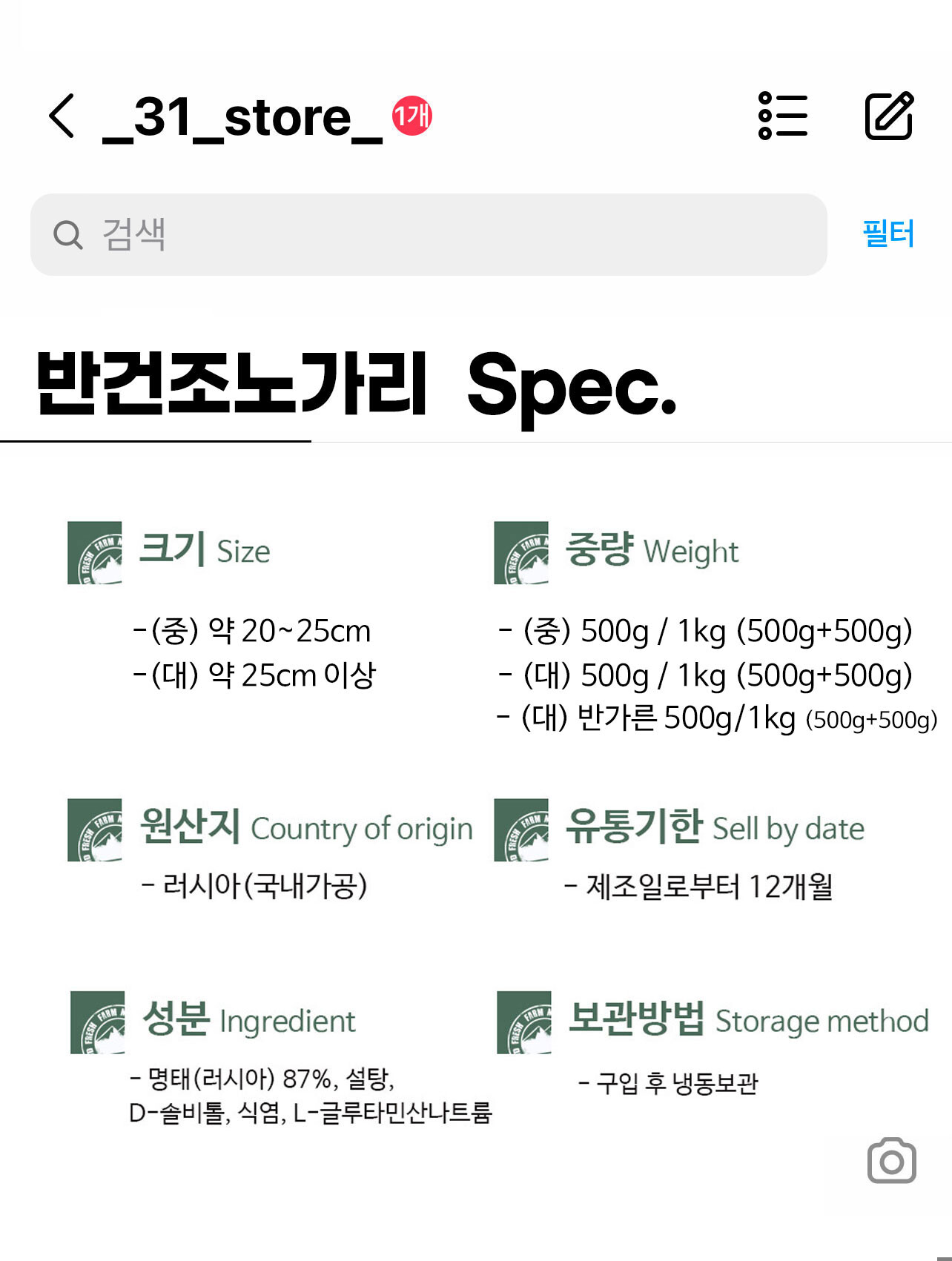 • 국내가공 반건조 노가리 1kg (500gx2봉, ICE BOX 포장 배송, 무료배송) 상품번호 : 44235
