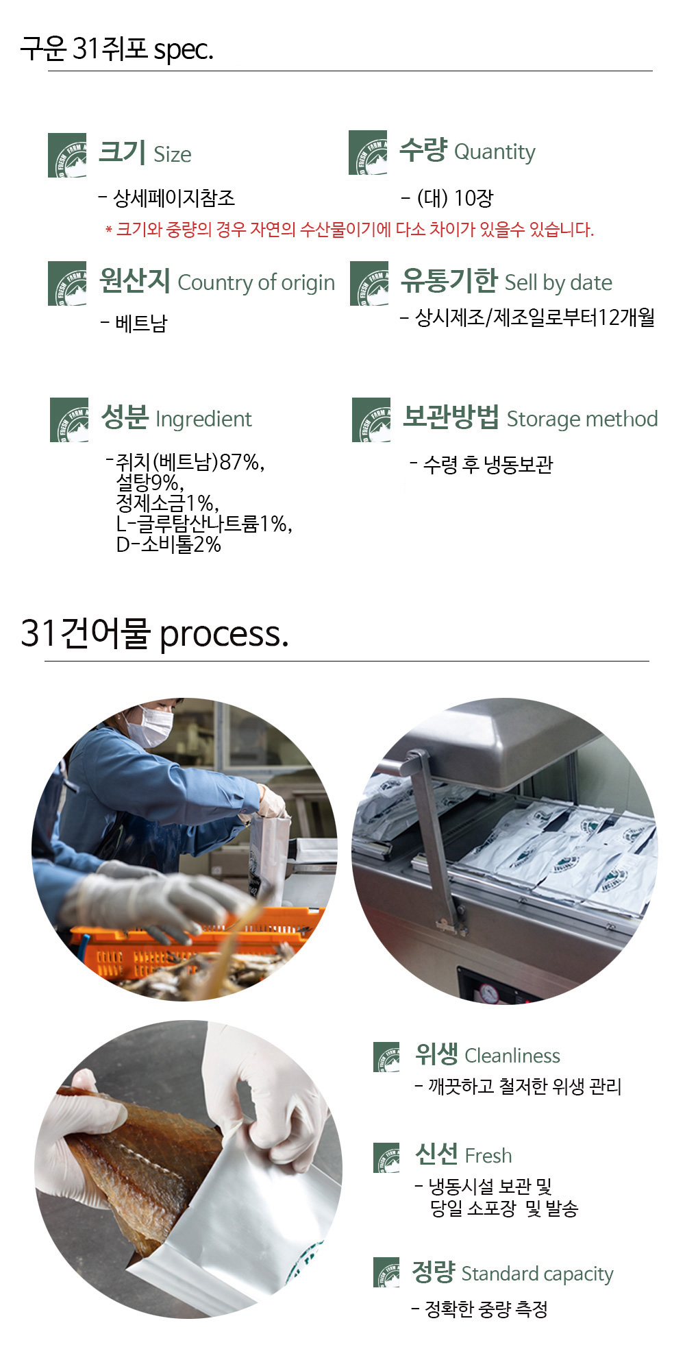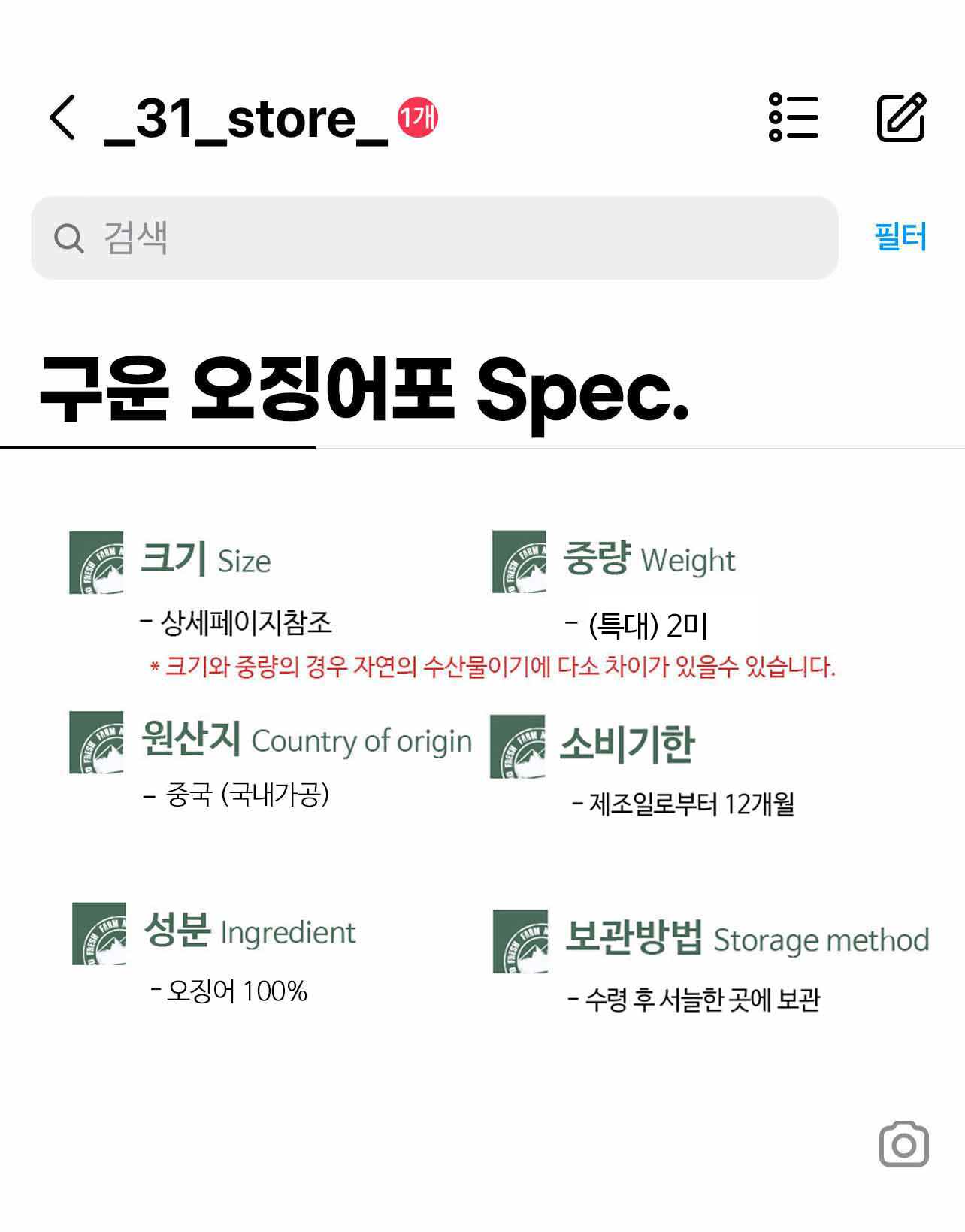 품목 또는 명칭 구운 오징어포 대 3미 외 로스팅 시리즈