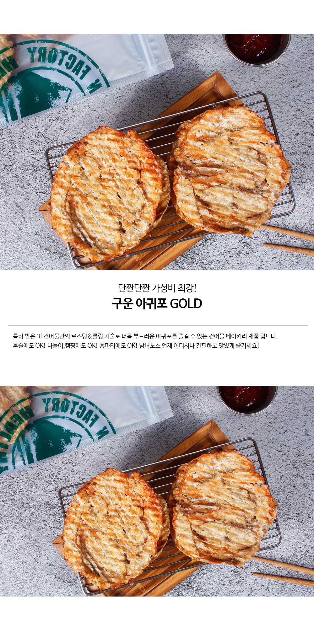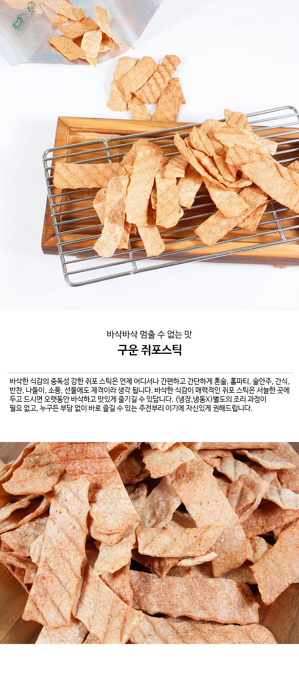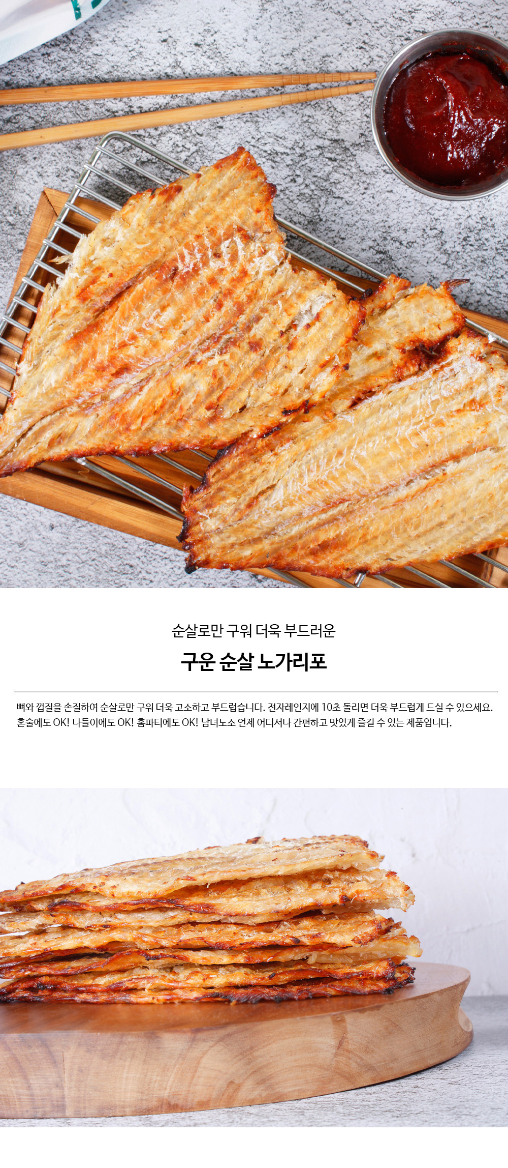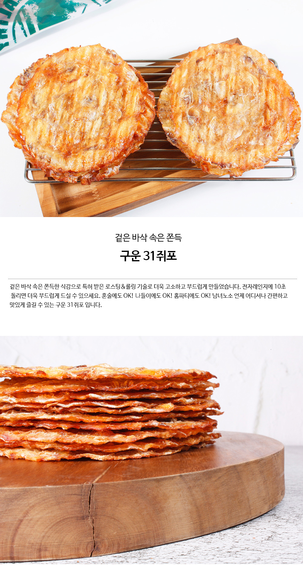 포장단위별 내용물의 용량(중량), 수량, 크기 구운 오징어 2미 / 구운 노가리포 5미 / 구운 쥐포 10장 / 구운 먹태채 100g / 구운 튀김쥐포 100g / 구운 아귀포 6장 / 구운 쥐포채 200g / 구운 아귀장줄 2장 / 낙지롱칩 130g