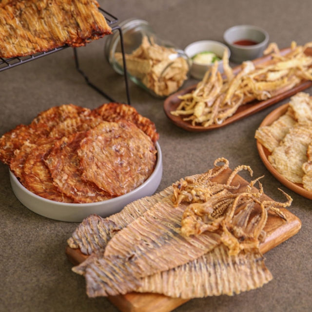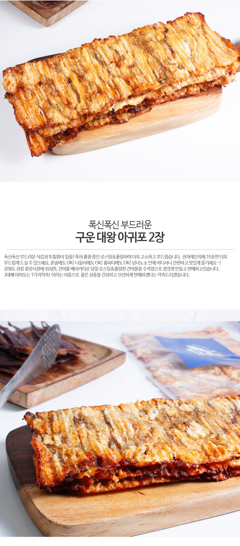 상품구성 구운 오징어 2미 / 구운 쥐포 10장 / 구운 먹태채 100g / 구운 튀김쥐포 100g / 구운 아귀포 6장 / 구운 쥐포채 200g / 구운 아귀장줄 2장 / 낙지롱칩 130g