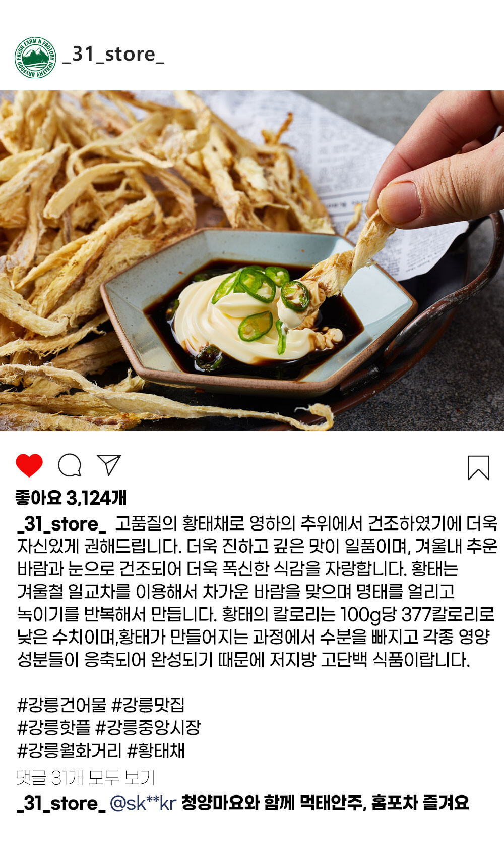 품목 또는 명칭 31건어물 상급 설원 황태채