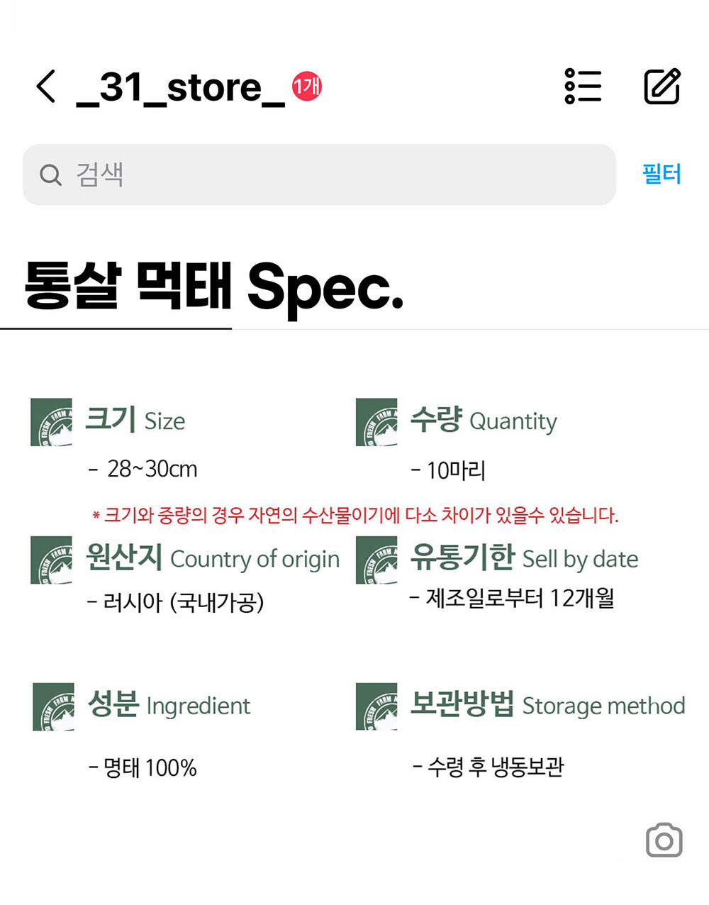 상품구성 명태 100%
