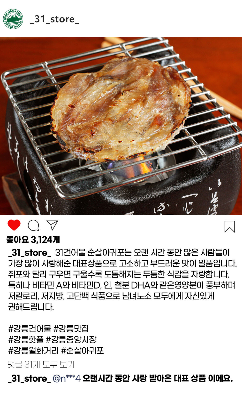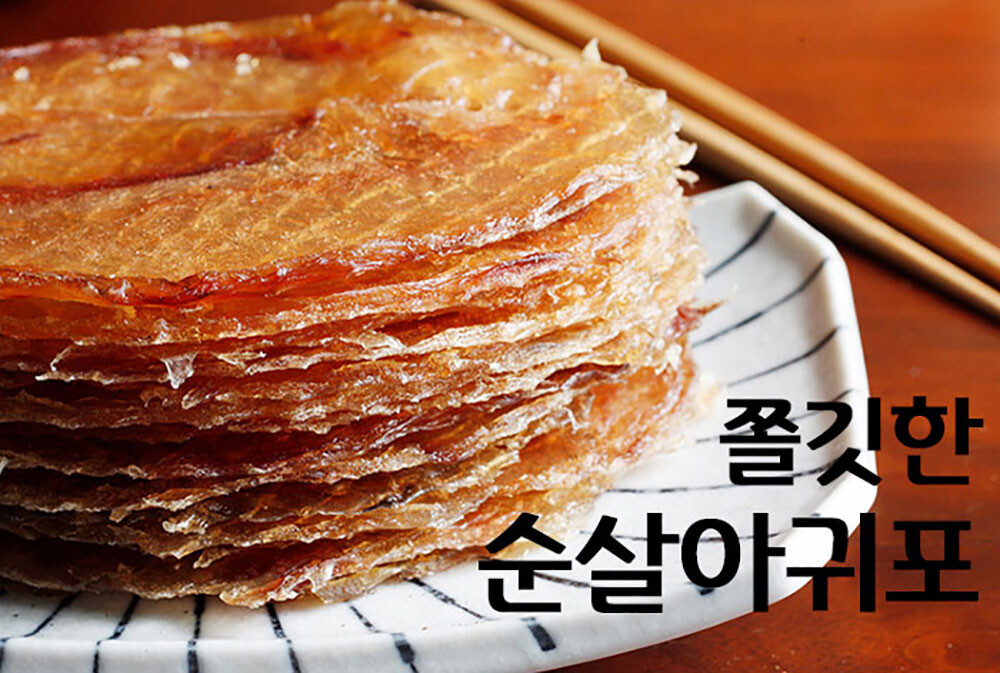 • 아귀 순살로 만든 아귀포, 폭신하고 쫄깃한 식감이 일품입니다.