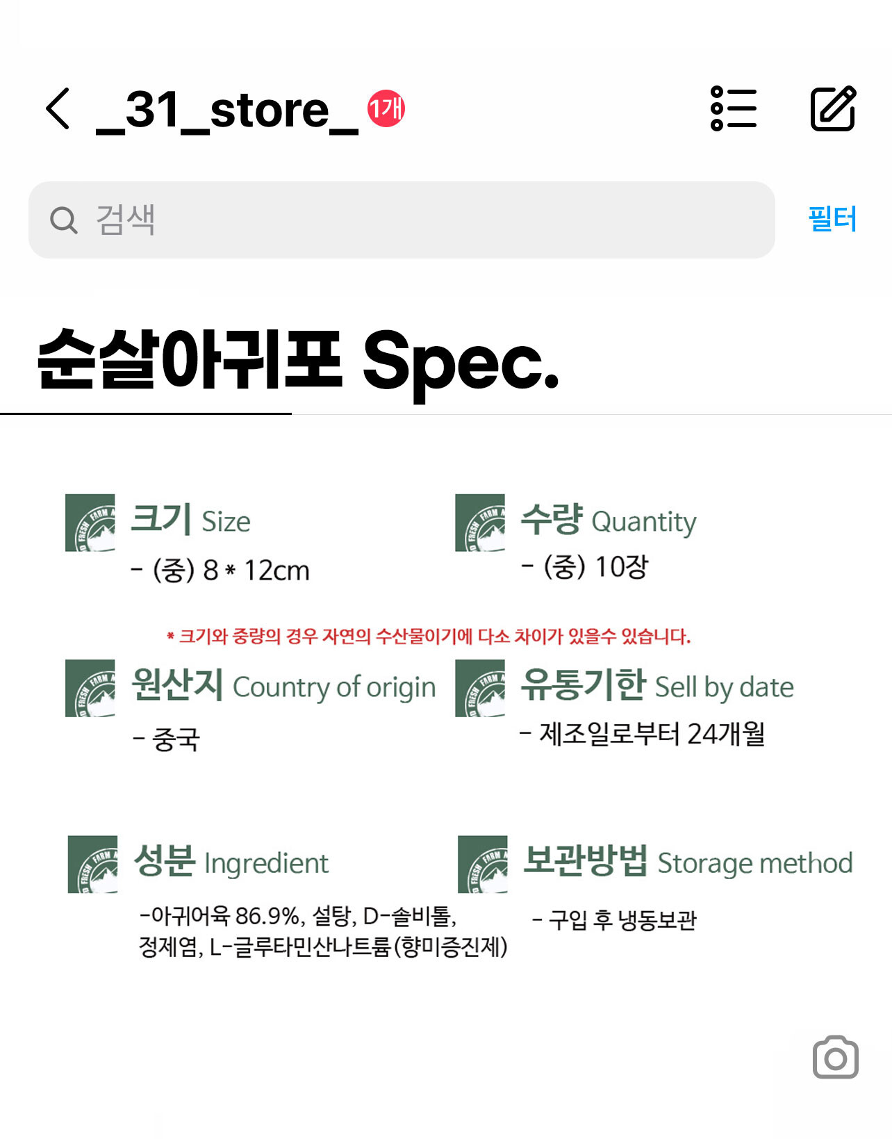 생산자 및 소재지 (수입품의 경우 생산자, 수입자 및 제조국) 소분원: 31건어물, 수입자: 세현컨설팅 (원산지: 중국)