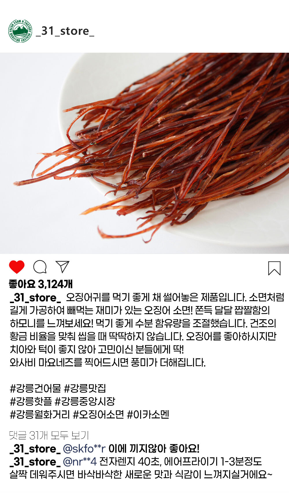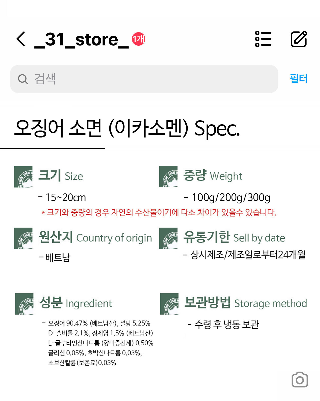 생산자 및 소재지 (수입품의 경우 생산자, 수입자 및 제조국) 생산자: 31건어물 (강원도 삼척시 미로면 동안로 98), 원산지 : 베트남
