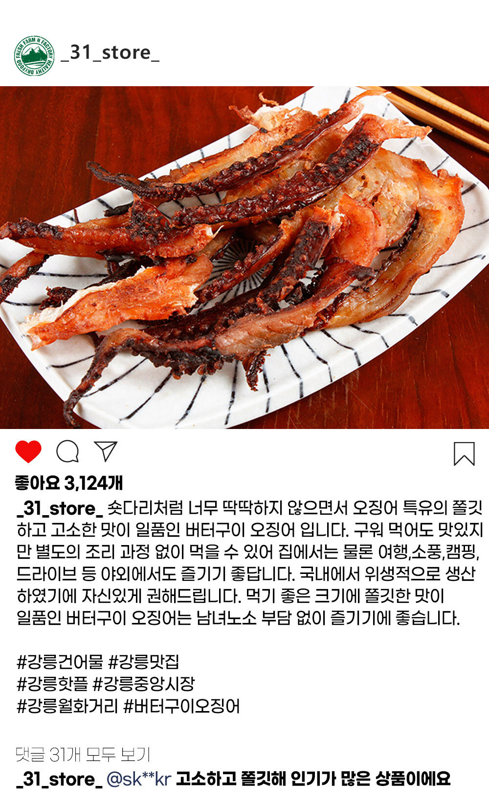 • 쫄깃하고 고소한 맛이 일품인 버터구이 오징어 다리 입니다.