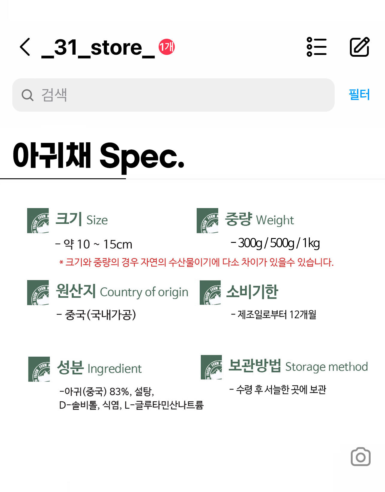 생산자 및 소재지 (수입품의 경우 생산자, 수입자 및 제조국) 생산자: 31건어물 (강원도 삼척시 미로면 동안로 98), 원산지: 중국
