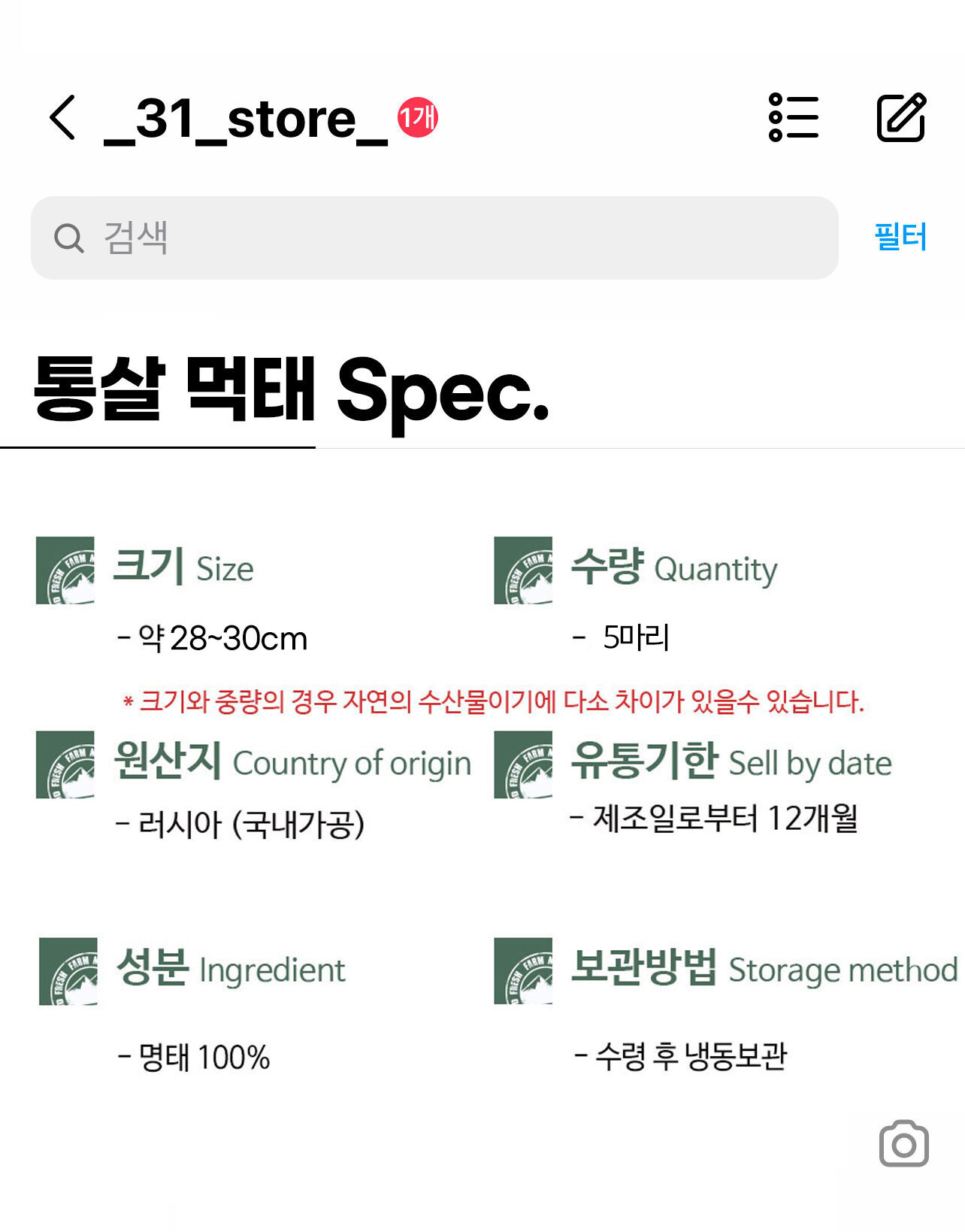 생산자,수입품의 경우 수입자를 함께 표기 생산자: 31건어물 (강원 삼척시 미로면 동안로 98)